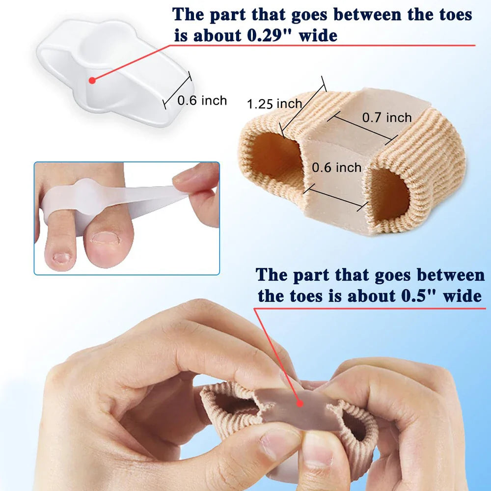 Fabriqués en silicone doux et en nylon résistant, ces séparateurs d'orteils s'adaptent avec douceur à tous types de pieds. Qu'il s'agisse de marcher ou de rester debout longtemps, appréciez le confort continu qu'ils vous procurent, vous permettant de vous concentrer sur ce qui compte vraiment sans être distrait par la douleur.