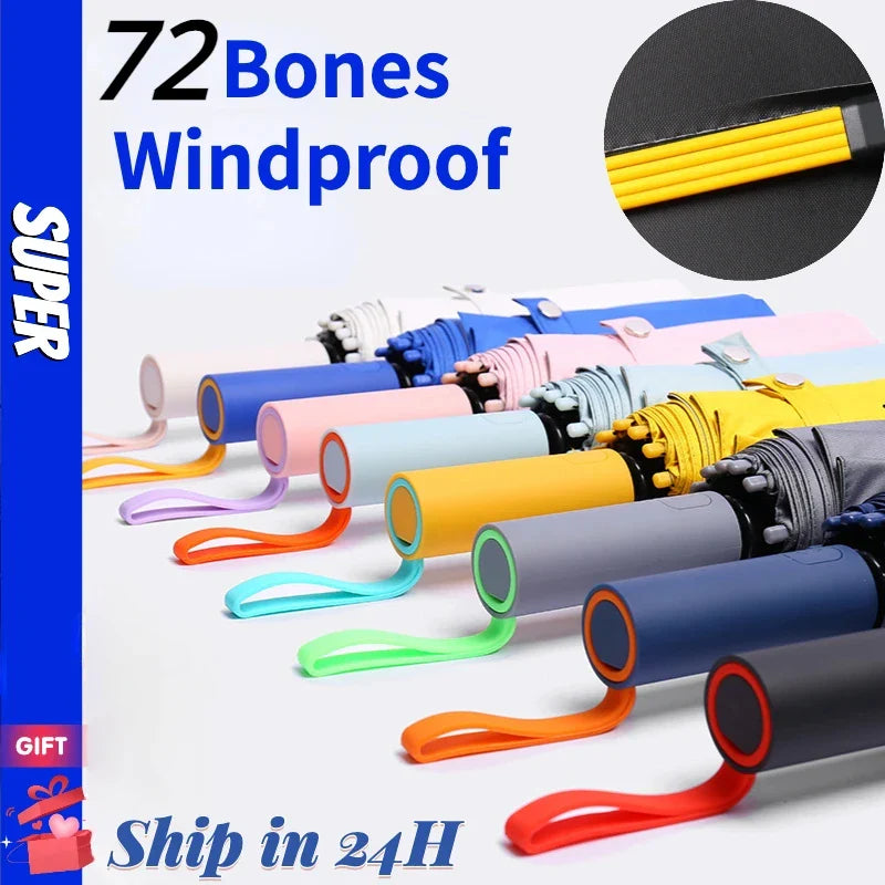 Notre parapluie est conçu avec une structure solide de 72 arceaux en fibre de verre, lui conférant une résistance inégalée contre les rafales de vent.