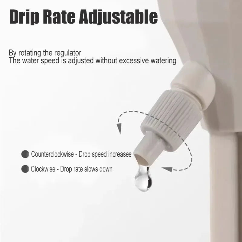 Grâce à sa conception en pointe, le kit s'enfonce facilement dans le sol et reste bien en place. Équipé d'un régulateur de vitesse, vous pouvez ajuster le débit d'eau pour convenir aux besoins spécifiques de chaque plante. Profitez d'une solution à la fois simple et très pratique! 🌱✨
