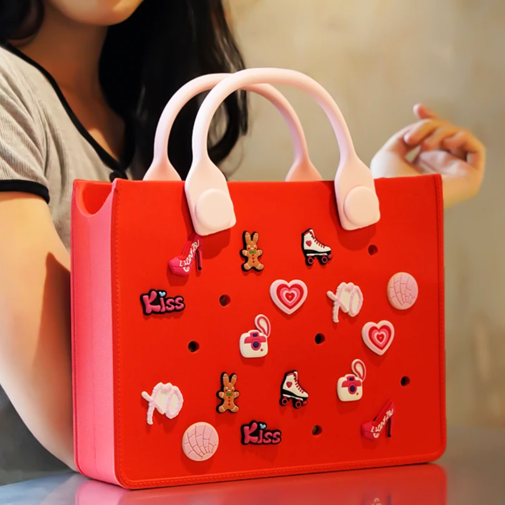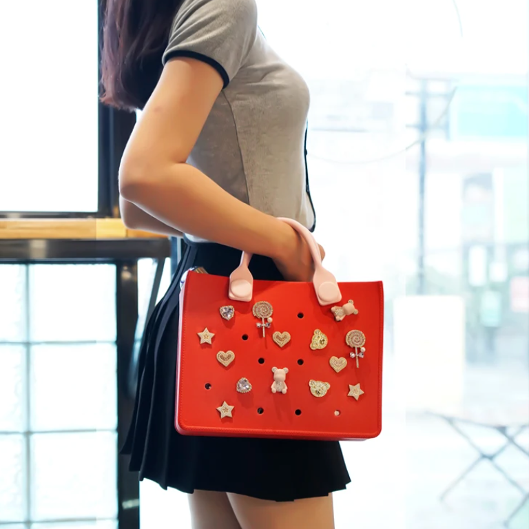 Son look perforé ultra moderne et sa doublure intérieure contrastée en font un accessoire de mode incontournable. Avec ses 22 trous extérieurs, ce tote bag est entièrement personnalisable : ajoutez des pins à votre image pour créer un sac qui vous ressemble. Son design et ses couleurs vibrantes en font une pièce forte qui s’accorde à toutes les personnalités, tenues ou occasions !